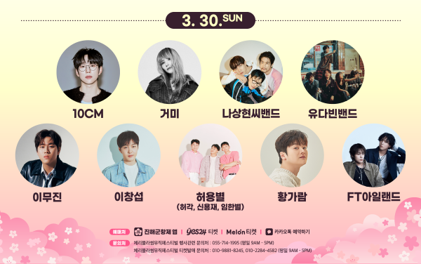 이번에는 ‘봄’의 이미지에 맞게 박정현, 너드커넥션, 데이브레이크, 소란, 소수빈, 적재, 정승환, YB(윤도현밴드), 10CM, 거미, 나상현씨밴드, 유다빈밴드, 이무진, 이창섭, 허용별(허각, 신용재, 임한별), 황가람, FT아일랜드로 라인업이 구성되어 발라드, 밴드음악, 알앤비 등 다양한 공연을 한 공간에서 즐길 수 있습니다.