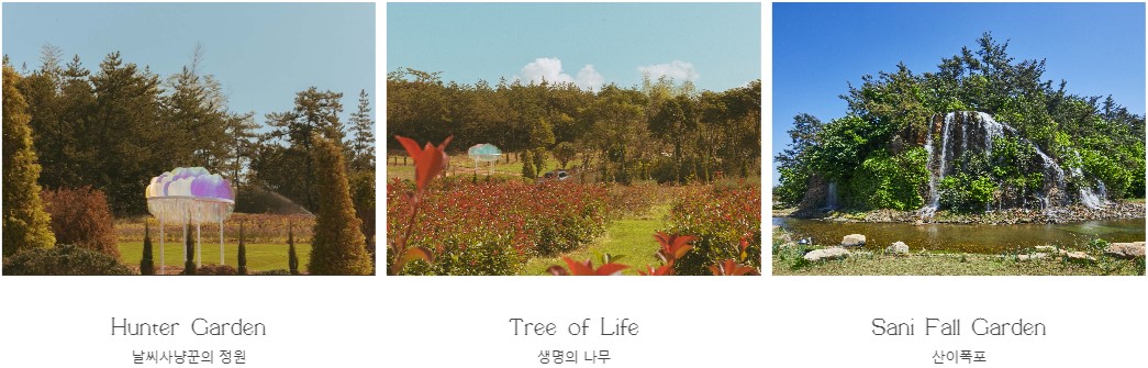 산이정원은 자연 본연의 색을 지향하며, 자연의 순리에 따라 성장하고 변화하는 정원, 자연과 미래를 연결하는 정원, 순간의 즐거움ㅇ보다 여운을 남기는 정원으로 건강하고 지속가능한 정원으로 만들어졌습니다.