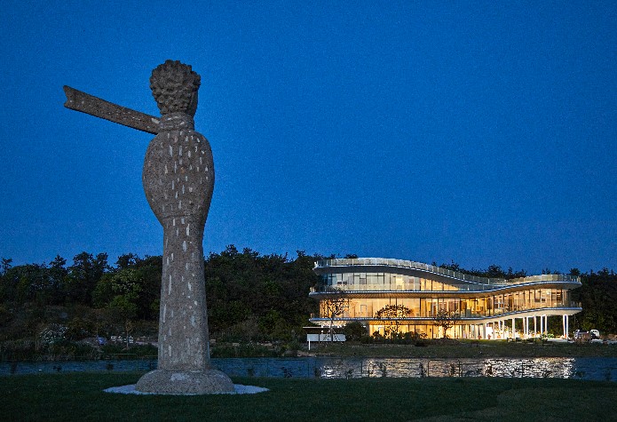 산이정원의 산세를 닮아 물이 흐르듯 자연을 따라 지어진 복합문화공간, 가든 뮤지엄 산이정원과 해남군 일대 자연을 바라보며 즐기는 여가공간입니다.