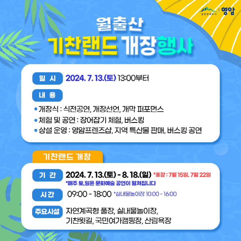 [영암 여행] 2024 영암 월출산 기찬랜드(물놀이장) 개장 정보